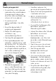 Rengøring og vedligeholdelse Ukorrekt anvendelse Risiko for skader på overfladerne • Brug ikke dampstråler til rengøring af apparatet. • På ståldele eller dele, som er overfladebehandlet med metalfinish (f.eks. anodiseringer, forniklinger, og forkromninger), må ikke anvendes produkter til rengøringen, som indeholder klor, ammoniak eller blegemiddel. • Brug ikke rengøringsmidler, som ridser eller ætser (f.eks. produkter i pulverform, pletrensere eller metalsvampe) på delene i glas.