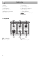Anvendelse Riste og bradepander 3.3 Brug af kogepladen Riste og bradepander skal indsættes i sideskinnerne, indtil stoppunktet. • De mekaniske sikkerhedslåse, som forhindrer utilsigtet udtrækning af risten, skal vende nedad, og mod ovnrummets bageste del. Alle betjeningsknapper på apparatet er samlet på frontpanelet. Ved hver knap er angivet det tilhørende blus. Apparatet er udstyret med en elektronisk tændingsmekanisme.
