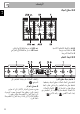 الوصف = AUXالشعلة اإلضافية األمامية = SRشعلة شبه سريعة = Rالشعلة السريعة AR 2.2سطح الموقد = UR2 int.سرعة فائقة للتاج الداخلي = UR2 ext.سرعة فائقة للتاج الخارجي 2.3لوحة التحكم 1مقابض موقد سطح الفرن ُتستخدم في إشعال شعالت سطح الموقد وضبطھا. اضغط على ھذه المقابض وأدرھا في عكس اتجاه إلشعال الشعالت حركة عقارب الساعة إلى ذات الصلة .لضبط مستوى اللھب ،أدر المقابض بين .