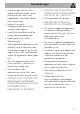 Anvendelse 3.1 Bemærkninger Forhøjet temperatur inde i ovnrummet under brugen Fare for forbrændinger • Hold lågen lukket under tilberedningen. • Beskyt hænderne med grillhandsker under håndtering af madvarer inde i ovnen. • Rør ikke ved varmeelementerne inde i ovnen. • Hæld ikke vand direkte på de meget varme bradepander. • Lad ikke børn under 8 år nærme sig ovnen, mens den er i funktion.