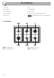 Inhaltsverzeichnis 1.1 1.2 1.3 1.4 1.5 1.6 1.7 Allgemeine Sicherheitshinweise Haftung des Herstellers Zweck des Gerätes Typenschild Dieses Bedienungshandbuch Entsorgung Wie man dieses Bedienungshandbuch lesen muss 2 Beschreibung 2.1 2.2 2.3 2.4 2.5 Allgemeine Beschreibung Kochfeld Bedienblende Weitere Teile Verfügbares Zubehör 3 Gebrauch 3.1 3.2 3.3 3.4 3.5 3.6 3.7 3.8 3.