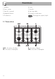 Uso 7. Per attivare il girarrosto, ruotare la manopola funzioni sulla posizione e impostare una temperatura di cottura tramite la manopola temperatura. Si consiglia di versare un po’ d’acqua nella teglia per evirare la formazione di fumo. 8. Alla fine della cottura, estrarre la teglia con il girarrosto. 9. Per movimentare comodamente l’asta girarrosto, avvitare l’apposita maniglia in dotazione. 3.4 Uso del piano Tutti i comandi e i controlli dell’apparecchio sono riuniti sul pannello frontale.