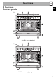 Descrizione 1 Alzatina 2 Piano cottura 3 Pannello comandi 4 Lampada Sinistra 5 Guarnizione 6 Porta 7 Ventola 8 Vano ripostiglio 9 Presa per sonda carne Telai supporto griglie/teglie 2.