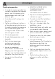 • Använd alltid kokkärl med jämn och plan botten. • Om det kokar över eller rinner över ska man torka bort vätskan från spishällen. • Var noga att inte hälla ut sura ämnen på spishällen, som t.ex. citronsaft eller vinäger. • Ställ inte tomma kastruller eller stekpannor på tända kokzoner. • Rengör aldrig apparaten med ångstråle. • Använd inte sträva eller slipande material eller vassa metallskrapor.