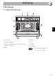 Beschrijving 2.3 Bedieningspaneel Nuttig voor het bedienen van de bereidingszones van de inductieplaat. Druk de knoppen in en draai ze rechtsom om het werkingsvermogen van de plaat te regelen, van minimaal 1 tot maximaal 9. Het werkingsvermogen wordt aangeduid op het display dat op de kookplaat is gepositioneerd. 2 Controlelamp Licht op om te melden dat de oven zich in de verwarmingsfase bevindt. Wordt uitgeschakeld als de temperatuur is bereikt.