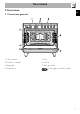 Descrizione IT 2.3 Pannello comandi 1 Orologio programmatore 4 Manopola funzioni Utile per visualizzare l’ora corrente, impostare cotture programmate e timer contaminuti. Le diverse funzioni del forno sono adatte a varie modalità di cottura. Dopo aver selezionato la funzione desiderata, impostare la temperatura di cottura tramite la manopola temperatura. 2 Manopola temperatura Tramite questa manopola è possibile selezionare la temperatura di cottura.