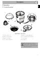 3.1 Before first use 3.2 How to assemble the juicer 1. Remove any labels and stickers from the juicer. 2. Wash and thoroughly dry the juicer's components (see “4 Cleaning and care”). 1. Insert the juice collector (1) into the slot on top of the motor base (2). Accidental start-up hazard • Make sure that the juicer is unplugged from the electrical outlet before putting on or taking off the citrus juicer's components. 2.
