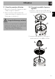 Utilisation 1. Enlevez les éventuelles étiquettes et autocollants du presse-agrumes. 2. Lavez et séchez soigneusement les composants du presse-agrumes (voir « 4 Nettoyage et entretien »). 3.2 Comment assembler le presseagrumes 1. Insérez le collecteur de jus (1) dans le logement au-dessus du corps moteur (2). FR 3.
