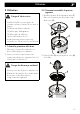 Introduction Ce manuel d’utilisation Usage prévu Avertissements généraux de sécurité Responsabilité du fabricant Plaque d’identification Élimination 30 2 Description 2.1 Description du produit 3 Utilisation 3.1 Avant la première utilisation 3.2 Comment assembler le presse–agrumes 3.3 Mode d’emploi du presse–agrumes 4 Nettoyage et entretien 4.1 Avertissements 4.2 Nettoyage de la base du moteur 4.3 Nettoyage des composants du presse-agrumes 30 30 30 31 33 33 33 FR FR 1.1 1.2 1.3 1.4 1.5 1.6 1.