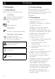 Ostrzeżenia 1 Ostrzeżenia 1.1 Wprowadzenie Ważne informacje dla użytkownika: Ostrzeżenia Ogólne informacje dotyczące instrukcji, bezpieczeństwa i końcowej utylizacji. Opis Opis urządzenia. Użytkowanie Informacje na temat użytkowania. Czyszczenie i konserwacja Informacje dotyczące prawidłowego czyszczenia i konserwacji urządzenia. Ostrzeżenia dotyczące bezpieczeństwa Informacja Porada 126 1.
