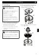 IT Användning Delar i rörelse Risk för personskada eller skador på apparaten SV • Citruspressen får inte vara igång mer än 3 minuter åt gången. Låt den svalna och vänta därefter 15 minuter innan du sätter igång den igen. • Stoppa inte in fingrar, gafflar eller skedar i pipen. Det kan leda till personskada eller skador på apparaten. • Se till att hålla händer, hår, halsband, slipsar, spatlar och andra föremål på avstånd från konen och filtret för att undvika personskador och skador på apparaten.