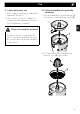 Uso IT 1. Quite cualquier etiqueta y pegatina del exprimidor de cítricos. 2. Lave y seque con mucho cuidado los componentes del exprimidor de cítricos (vea “4 Limpieza y cuidado”). 3.2 Cómo ensamblar el exprimidor de cítricos 1. Coloque la bandeja colectora del jugo (1) en el asiento encima del cuerpo motor (2). ES 3.1 Antes del primer uso Peligro de encendido accidental • Asegúrese de que el exprimidor de cítricos esté desenchufado de la toma de corriente antes de montar o quitar los componentes. 2.