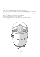 Instructions For this appliance • Do not touch moving parts while the appliance is operating. Keep hands, hair and clothing, and utensils away from moving parts during operation, to prevent personal injury and/or damage to the appliance. • Always disconnect the citrus juicer from the power socket if it is left unattended and before assembly, disassembly or cleaning. • Unplug the citrus juicer when it is not being used, before cleaning it and if you notice any fault.