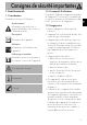 Consignes de sécurité importantes Pour cet appareil • Durant le fonctionnement, évitez le contact avec les parties en mouvement. Éloignez les mains, les cheveux, les vêtements et les ustensiles des parties en mouvement durant le fonctionnement pour éviter de vous blesser et d’endommager l’appareil. • Débranchez toujours le presse-agrumes de la prise de courant lorsque vous le laissez sans surveillance, avant le montage et le démontage des composants et avant de le nettoyer.