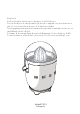Anvisningar För denna apparat • Undvik kontakt med rörliga delar under drift. Se till att hålla händer, hår, kläder och köksredskap på avstånd från delar i rörelse för att undvika personskador eller skador på apparaten. • Koppla alltid ur citruspressen ur eluttaget innan du lämnar den oövervakad, innan du monterar eller tar loss delar och innan du rengör den. • Dra ut kontakten ur eluttaget när citruspressen inte används, innan du gör rent den och om det är något fel på den.