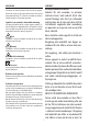 ten sätts kylfläkten på. När funktionen har avslutats kommer apparaten att bibehålla kylfläkten på för att förhindra bildandet av kondens på köksmöbelns insida. Fläkten stängs av automatiskt efter några minuter. Observera! Apparaten slutför denna funktion även i de fall apparaten stängs av genom att man vrider reglaget (C6) åt höger eller åt vänster. Varning! Titta inte rakt mot lamporna eller genom ett optiskt förstoringsinstrument.