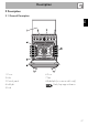 Contents 1.1 1.2 1.3 1.4 1.5 1.6 1.7 General safety instructions Manufacturer’s liability Appliance purpose Identification plate This user manual Disposal How to read the user manual 2 Description 2.1 2.2 2.3 2.4 2.5 General Description Hob Control panel Other parts Available accessories 3 Use 3.1 3.2 3.3 3.4 3.5 3.6 3.7 Instructions Cleaning the surfaces Cleaning the hob Cleaning the door Cleaning the oven cavity Extraordinary maintenance 5 Installation 5.1 5.2 5.3 5.4 5.