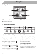 Description 4 Manette de la température Turbine de refroidissement FR Cette manette permet de sélectionner la température de cuisson. Tournez la manette dans le sens des aiguilles d’une montre sur la valeur souhaitée comprise entre le minimum et le maximum. 5 Voyant Il s’allume lorsque le four est en train de chauffer. Il s’éteint lorsque la température est atteinte. L’intermittence régulière signale que la température à l’intérieur du four est maintenue constante. 2.