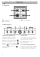 Beskrivelse 2.2 Kogeplade AUX = Hjælpeblus SR = Halvhurtigt blus UR-3c = Ekstra hurtigt blus 2.3 Betjeningspanel 1 Knapper til kogepladens blus 2 Funktionsknap Anvendes til at tænde og indstille kogepladens blus. Tryk på og drej knapperne mod urets retning til værdien for at tænde de tilhørende blus. Drej knapperne i området mellem maksimum Ovnens funktioner er tilpasset forskellige former for tilberedning.