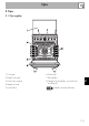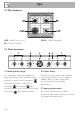 Opis 2.2 Płyta kuchenna AUX = Palnik Pomocniczy SR = Palnik Pół-szybki UR-3c = Palnik Ultraszybki 2.3 Panel sterowania 1 Pokrętła palników płyty 2 Pokrętło funkcji Do włączania i regulowania palników płyty. Aby włączyć dane palniki wcisnąć i przekręcić pokrętło w lewo na wartość . Przekręcać pokrętło w zakresie od maksimum do minimum , aby wyregulować płomień. Przywrócić pokrętła na pozycję , aby wyłączyć palniki. Różne funkcje piekarnika odpowiadają różnym trybom pieczenia.