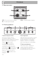 Описание 2.2 Варочная панель AUX = Вспомогательная конфорка SR = Полубыстрая конфорка UR-3c = Сверхбыстрая конфорка 2.3 Панель управления 1 Ручки конфорок панели 2 Ручка функций Используются для розжига и регулировки пламени конфорок варочной панели. Нажмите и поверните ручки против часовой стрелки до символа для розжига соответствующих конфорок. Поворачивайте ручки в зоне, находящейся между символами максимального и минимального режима нагрева для регулировки пламени.