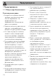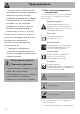 Использование 3.1 Предупреждения Высокая температура внутри духовки во время использования Опасность получения ожогов • Во время приготовления держите дверцу закрытой. • Используйте термостойкие рукавицы для защиты рук во время перемещения блюд внутри духовки. • Не трогайте нагревательные элементы внутри духовки. • Не наливайте воду на очень горячие противни. • Не позволяйте детям, которым меньше 8 лет, приближаться к духовке во время ее работы.
