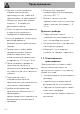 Предупреждения Риск повреждения прибора • Запрещается использовать абразивные или коррозионные чистящие средства (например, порошки, пятновыводители и металлические мочалки) для чистки стеклянных частей прибора. • При необходимости пользуйтесь деревянными или пластмассовыми кухонными принадлежностями. • Решетки и противни следует в ставить в направляющие до полной остановки. Механические предохранительные блокировки, препятствующие их выемке, должны быть повернуты вниз и в сторону задней стенки духовки.
