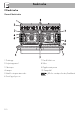 Beskrivelse 2 Beskrivelse Generell beskrivelse 1 Platetopp 2 Betjeningspanel 3 Pakninger 4 Lamper 5 Uttak for temperatursonde 6 Dør til pyrolyseovn 210 7 Dør til fuktet ovn 8 Vifter 9 Oppbevaringsrom 10 Dampskål Rille for ovnsstiger for rister/bakebrett
