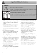 Important Safety Instructions WARNING PRIMARY FASTENING SYSTEM: Visually check that the wall-mounted brackets are inserted into the appropriate lateral hooks (on both sides). SECONDARY FASTENING SYSTEM: Visually check from the inside of the drawer that the floor-mounted bracket is inserted into the appropriate lateral hooks (left or right). • Proper installation is your responsibility. Make sure your appliance is properly installed and grounded by a qualified installer.