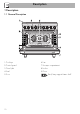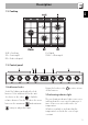 Description EN 1.2 Cooktop R = Rapid DUAL = Ultra-rapid AUX = Auxiliary SR = Semi-rapid RR = Reduced rapid 1.3 Control panel 1 Hob burner knobs Useful for lighting and adjust the hob burners. Press and turn the knobs anticlockwise to the value to light the relative burners. Turn the knobs to the zone between the maximum and minimum setting to adjust the flame. Return the knobs to the off the burners.