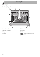 Descrição 2.2 Placa de cozinha AUX = Auxiliar SR = Semirrápido R = Rápido DUAL = Ultra-rápido 1 Botões dos queimadores da placa Úteis para ligar e ajustar os queimadores da placa. Pressione e rode os botões em sentido antihorário para o valor para ligar os queimadores correspondentes. Rode os botões na zona compreendida entre o máximo e o mínimo para regular a chama. PT 2.3 Painel de comandos Coloque os botões na posição apagar os queimadores.