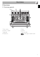 Descrizione IT 2.3 Pannello comandi 1 Manopole zone cottura del piano 2.4 Altre parti Utili per comandare le zone di cottura del piano ad induzione. Premere e ruotare le manopole in senso orario per regolare la potenza di funzionamento della piastra che va da un minimo di 1 ad un massimo di 9. La potenza di lavoro è indicata dal display posizionato sul piano cottura. Ventola di raffreddamento La ventola provvede a raffreddare i forni ed entra in funzione durante la cottura.