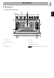 Beskrivelse DA 2.3 Betjeningspanel 1 Knapper for pladens kogezoner 2.4 Andre dele Bruges til at styre kogezonerne på induktionskogepladen. Tryk på og drej knapperne i urets retning for at regulere funktionseffekten for pladen, som går fra et minimum på 1 til et maksimum på 9. Den ydede effekt angives af displayet, som er placeret på kogepladen. Afkølingsventilator Ventilatoren sørger for at afkøle ovnene, og går i funktion under tilberedningen.