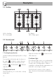 Use 3.4 Using the cooktop All the appliance's control and monitoring devices are located together on the front panel. The burner controlled by each knob is shown next to the knob. The appliance is equipped with an electronic ignition device. Simply press the knob and turn it anticlockwise to the maximum flame symbol, until the burner lights. If the burner does not light in the first 15 seconds, turn the knob to and wait 60 seconds before trying again.