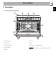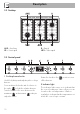 Description 2.2 Cooktop AUX = Auxiliary SR = Semi-rapid R = Rapid UR2 = Ultra rapid 2.3 Control panel 1 Cooktop burner knobs Useful for lighting and adjusting the cooktop burners. Press and turn the knobs anti-clockwise to the value to light the relative burners. Turn the knobs to the zone between the maximum and minimum setting to adjust the flame. 10 Return the knobs to the off the burners. position to turn 2 Indicator light The indicator light comes on to indicate that the oven is heating up.