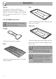 • With the Grill function, we recommend that you turn the temperature knob to the maximum value near the symbol to optimise cooking. • Foods should be seasoned before cooking. Foods should also be coated with oil or melted butter before cooking. • Use the oven tray on the first bottom shelf to collect fluids produced by grilling. • Grilling processes should never last more than 60 minutes. Advice for cooking desserts/pastries and biscuits • Use dark metal moulds: they help to absorb the heat better.