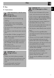 Use 3.1 Instructions High temperature inside the oven during use Danger of burns • Keep the oven door closed during cooking. • Protect your hands wearing heat resistant gloves when moving food inside the oven. • Do not touch the heating elements inside the oven. • Do not pour water directly onto very hot trays. • Do not allow children younger than 8 years old to come near the appliance when in operation.