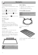 Use • With the Grill function, we recommend that you turn the temperature knob to the maximum value near the symbol to optimise cooking. • Foods should be seasoned before cooking. Foods should also be coated with oil or melted butter before cooking. • Use the oven tray on the first bottom shelf to collect fluids produced by grilling. • Grilling processes should never last more than 60 minutes. Advice for cooking desserts/pastries and biscuits • Use dark metal moulds: they help to absorb the heat better.