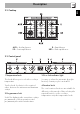 Description AUX = Auxiliary burner SR = Semi-rapid burner EN 2.2 Cooktop R = Rapid burner UR2 = Ultra rapid burner 2.3 Control panel 1 Temperature knob 3 Door lock indicator light This knob allows you to select the cooking temperature. It comes on when the automatic (pyrolytic function) cleaning cycle is activated. Turn the knob clockwise to the required value, between the minimum and maximum setting.