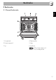 Beskrivelse DA 2.3 Betjeningspanel 1 Temperaturknap 2.4 Andre dele Ved hjælp af denne knap er det muligt at vælge tilberedningstemperaturen. Drej knappen med uret til den ønskede værdi mellem minimum og maksimum. Positionsriller 2 Kontrollampe Tændes for at signalere, at ovnen er under opvarmning. Slukkes når den valgte temperatur er opnået. De regelmæssige mellemrum viser, at temperaturen i ovnen holdes konstant.
