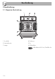 Beschreibung 2.3 Bedienblende 1 Temperaturknebel 2.4 Weitere Teile Mit diesem Drehknebel kann die Gartemperatur ausgewählt werden. Den Drehknebel im Uhrzeigersinn auf den gewünschten Wert zwischen Minimum und Maximum drehen. Schienen zur Positionierung 2 Kontrolllampe Das Aufleuchten dieser Kontrolllampe zeigt an, dass sich der Ofen in der Vorheizphase befindet. Sobald die gewünschte Temperatur erreicht ist, schaltet sich die Kontrolllampe aus.
