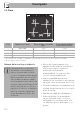 Uso Bloqueo de los mandos El módulo de gestión de la potencia no influye en la absorción eléctrica total del aparato. Después de haber activado la placa de cocción: 1. pulsar al mismo tiempo las teclas y . Cuadro de guía de cocción confirmación pulsar la tecla . Los mandos ahora están bloqueados y se mostrará en las pantallas. Una falta de tensión de red provoca la desactivación del bloqueo de los mandos.
