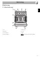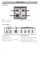 Beskrivning 2.2 Spishäll AUX = Reservbrännare SR = Halvsnabb brännare UR-3c = Extra snabb brännare 2.3 Kontrollpanel 1 Temperaturvred 2 Indikeringslampa Med detta vred väljer man tillagningstemperatur. Vrid vredet medurs till önskat värde mellan det lägsta och det högsta. Lampan tänds för att visa att ugnen värms upp. Lampan slocknar vid den temperatur som har ställts in. Lampan blinkar regelbundet när temperaturen inne i ugnen ligger konstant vid det värde som ställts in.