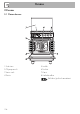 Sisällysluettelo 1.1 1.2 1.3 1.4 1.5 1.6 1.7 100 Turvallisuuteen liittyvät yleiset varoitukset Valmistajan vastuu Laitteen käyttötarkoitus Tyyppikilpi Tämä käyttöohje Hävittäminen Miten käyttöohjetta luetaan 2 Kuvaus 2.1 2.2 2.3 2.4 2.5 100 104 104 104 104 104 105 106 Yleinen kuvaus Keittotaso Ohjauspaneeli Muut osat Saatavilla olevat lisävarusteet 106 107 107 108 108 3 Käyttö 110 3.1 3.2 3.3 3.4 3.5 3.