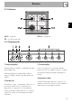 Kuvaus FI 2.2 Keittotaso AUX = Lisäpoltin SR = Puolinopea poltin UR-3c = Pikapoltin 2.3 Ohjauspaneeli 1 Lämpötilakytkin 3 Toimintokytkin Tämän kytkimen avulla on mahdollista valita paistolämpötila. Uunin eri toiminnot soveltuvat erilaisille paistotavoille. Kun haluttu toiminto on valittu, aseta paistolämpötila lämpötilakytkimen kautta. Käännä kytkintä myötäpäivään halutun arvon kohdalle, minimi- ja maksimiarvojen välillä. 2 Merkkivalo Merkkivalo syttyy osoittamaan, että uuni on kuumennusvaiheessa.
