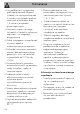 Ostrzeżenia Uszkodzenie urządzenia • Nie stosować na częściach szklanych ściernych lub agresywnych detergentów (np. produktów z granulkami, odplamiaczy i metalowych gąbek). • Ewentualnie używać drewnianych lub plastikowych narzędzi. • Ruszty i blachy powinny być wkładane w boczne ramki, aż do całkowitego zatrzymania się. Mechaniczne blokady bezpieczeństwa, które zapobiegają ich wyjęciu powinny być odwrócone w dół i w kierunku tylnej części komory pieczenia. • Nie siadać na urządzeniu.
