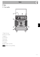 Opis 4 Pokrętło minutnika Wentylator Umożliwia ustawienie pieczenia ręcznego lub minutnika z automatycznym wyłączaniem piekarnika po zakończeniu pieczenia. 5 Pokrętła palników płyty maksimum do minimum , aby wyregulować płomień. Przywrócić pokrętła na pozycję , aby wyłączyć palniki. 2.4 Pozostałe części Poziomy Urządzenie posiada poziomy do umieszczania na nich blach i rusztów na różnych wysokościach. Wysokości ustala się od dołu do góry (patrz 2.1 Opis ogólny).