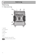 Beskrivning 4 Timervred med minuträknare Kylfläkt För att använda timern med minuträknare ska man ställa in ljudsignalen genom att vrida vredet medurs. Siffrorna motsvarar minuter. Regleringen är progressiv och mellanlägen mellan de angivna siffrorna kan användas. Timern med minuträknare aktiverar bara ljudsignalen, den avbryter inte tillagningen. 5 Vred till spishällens brännare Används för att starta och reglera hällens brännare.