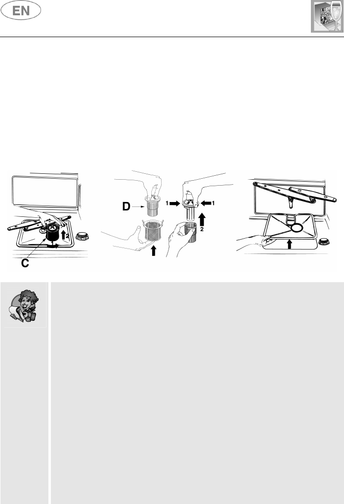 • push the centre filter D from the underside to remove it from the