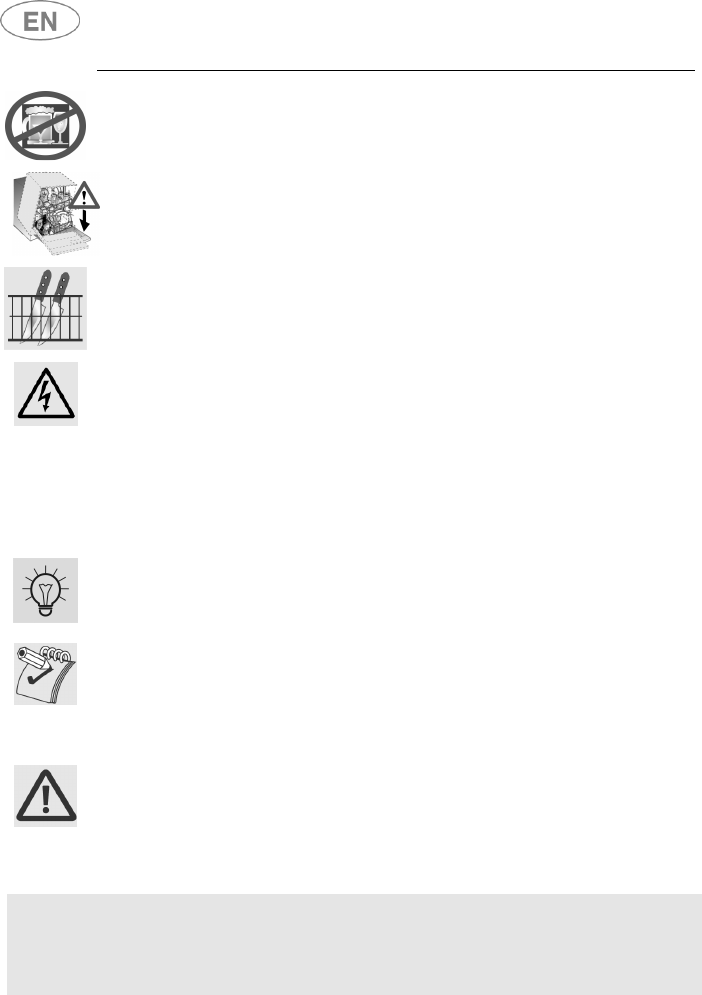 KNIVES OR OTHER SHARP-ENDED COOKING UTENSILS MUST BE PLACED